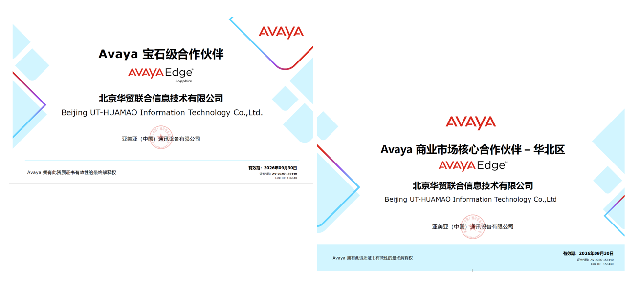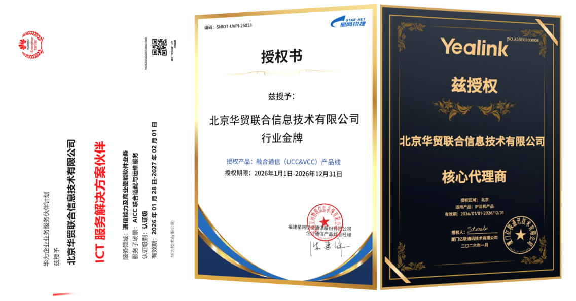 - 2014年至今:持续深化与Avaya的合作,晋升为Avaya钻石级/宝石级核心合作伙伴(证书有效期至2026年)。同时,积极拓展多元化的产品生态,相继获得华为、亿联(Yealink)、星网锐捷等国内外主流通信厂商的官方授权,构建了完整的多品牌、全场景解决方案能力。