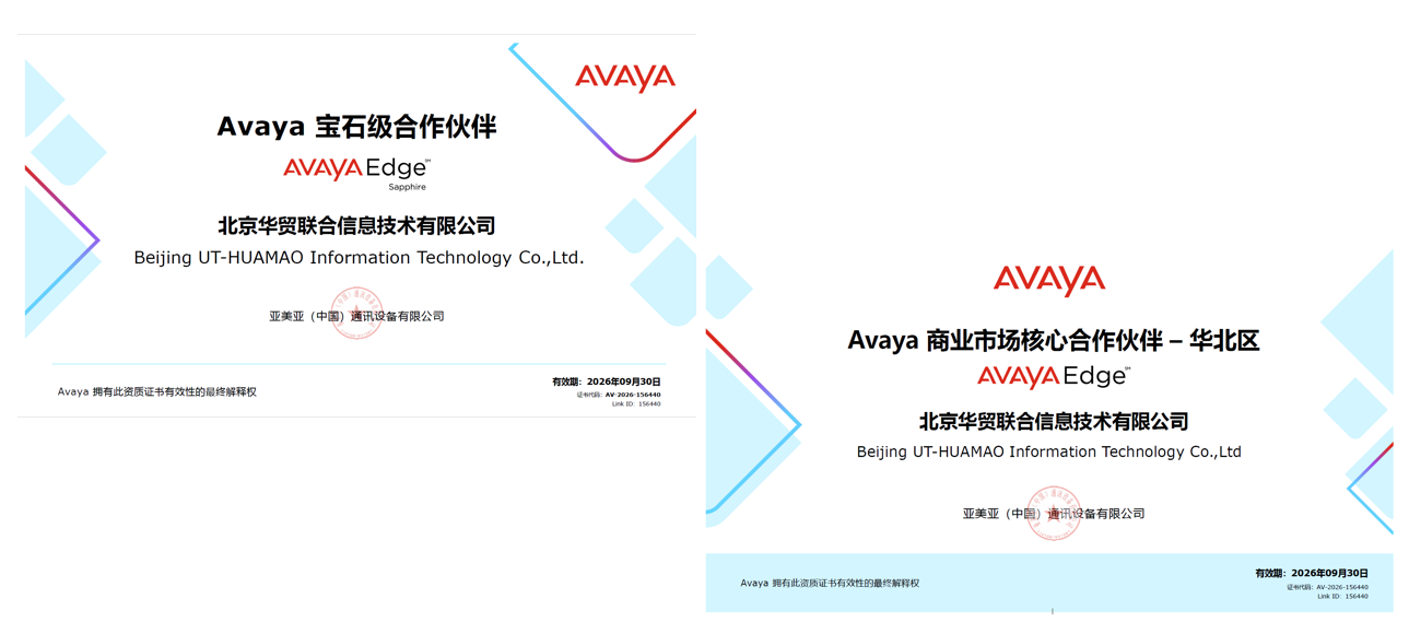 成立于2004年的华贸联合,不仅长期保持与美国AVAYA公司的深度合作(钻石级/宝石级合作伙伴),更始终积极构建与国内外主流通信厂商的生态协作体系。此次集中斩获华为、亿联、锐捷三大厂商认证,是公司“多元生态、专注集成”战略的重要成果。