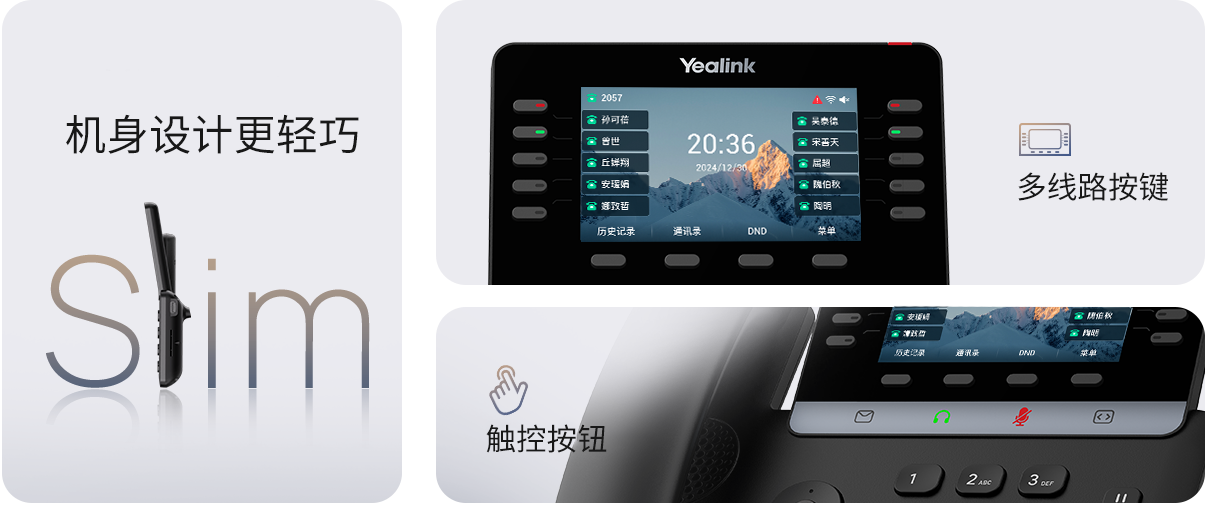 极简外观设计,机身更轻薄、更时尚;配置10个线路键最多可编程50个DSS键,拓展丰富的应用功能;